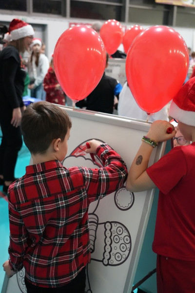 Organizatorzy przygotowali mnóstwo atrakcji: dzieci bawiły się kołem fortuny – odgadując wcale nie łatwe zagadki, rozwiązywały krzyżówki, kolorowały portret Św. Mikołaja i choinki. Bardzo atrakcyjne – szczególnie dla najmłodszych – były książki zabawki i klocki magnetyczne. Długa kolejka dzieci ustawiła się przed fotobudką i stoiskiem, gdzie można było zrobić tatuaże i kolorowe warkoczyki.