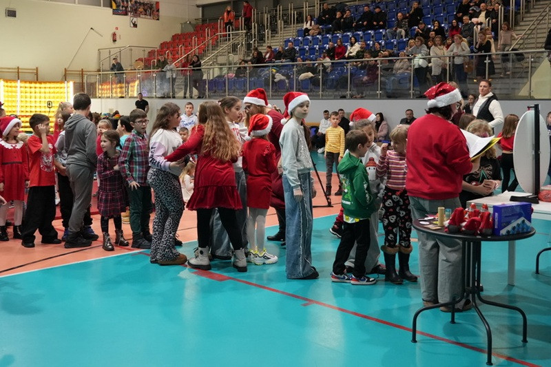 7 grudnia 2025 r. w niedzielne popołudnie, już przed godziną siedemnastą, na hali MOSiR-u w Jaśle było gwarno i wesoło. Każde dziecko z niecierpliwością wyczekiwało pojawienia się Świętego Mikołaja i oczywiście Mikołaj nie zawiódł! Pojawił się w hali z głośnym powitaniem wszystkich uczestników. Nasz gość zaprosił dzieci do wspólnej zabawy.
