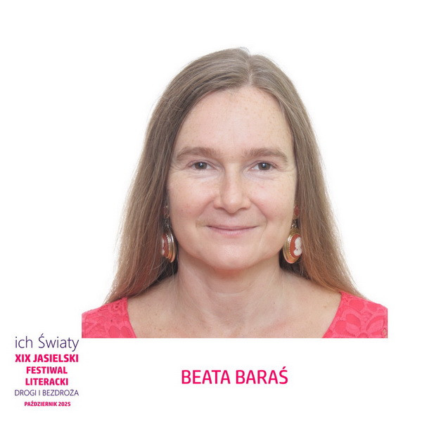 Beata Baraś (ur. 1978) – doktor nauk humanistycznych w dziedzinie literaturoznawstwa. Ukończyła studia podyplomowe z zakresu wiedzy o kulturze. Była redaktorką lokalnego miesięcznika „Region Żmigrodzki”. Przez kilka lat pracowała w polskich szkołach na Białorusi i Łotwie. Obecnie jest nauczycielką w I Liceum Ogólnokształcącym w Jaśle. Miłośniczka książek, malarstwa, krótkich wycieczek i dalekich podróży. Ostatnio odwiedziła Japonię i Tajlandię. Prowadzi spotkania autorskie z polskimi pisarzami i artystami.