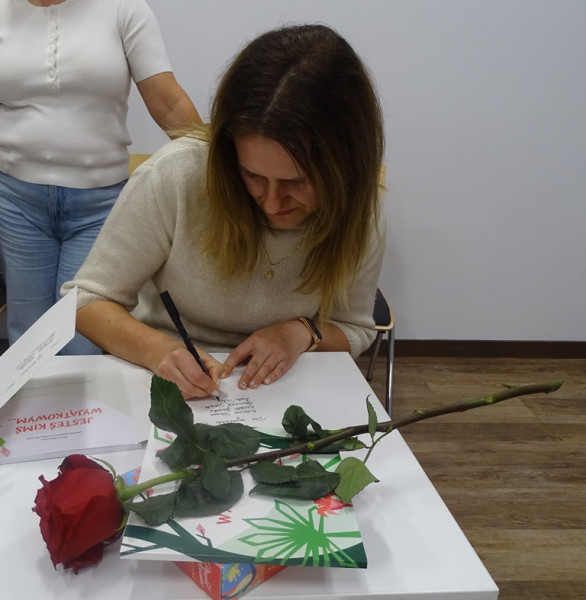 Spotkanie rozpoczęło się krótkim wprowadzeniem autorek, które opowiedziały o źródłach inspiracji do napisania książki oraz o tym, jak praca z dziećmi i młodzieżą ukształtowała ich podejście do tematu poczucia własnej wartości. Następnie czytały napisane przez siebie bajki, wprowadzając Klubowiczów w magiczny świat opowieści, emocji i marzeń. Wioleta Garstka czytała o Księżniczce Miogotce – bohaterce, która przekonuje nas, że nieważne jest to, co posiadamy, ale to, co dajemy innym. Agnieszka Gruszka przeczytała przygody „O pajączku Jagódce i tajemnicy akceptacji”, historii, która porusza ważny temat i uczy czytelników, że warto być sobą i szukać swojego miejsca w grupie, nawet gdy na początku wydaje się to trudne. Ewelina Reczek przeczytała opowiadanie Magdaleny Strzałki pt. „Miód na serce”, z którego dowiadujemy się, że dobro do nas wróci pod warunkiem, że będziemy żyli w zgodzie ze sobą oraz będziemy życzliwi i dobrzy dla innych. Natomiast Anna Potocka zaprezentowała utwór pt. „Miś Gustaw”, w którym marzenia stają się rzeczywistością, co czyni bohatera silniejszym i bardziej wiarygodnym, a jednocześnie przekonuje czytelników, że warto pielęgnować pragnienia, nawet jeśli wydają się nierealne. Po każdym odczytanym fragmencie dzieci były proszone o stworzenie ilustracji, na których przedstawiały swoją interpretację treści, ulubionego bohatera lub scenę z odczytanego fragmentu. Na zakończenie spotkania absolwentki podziękowały wszystkim za zaangażowanie i otwartość na czytanie oraz podkreśliły, że bajki nie tylko bawią, ale także uczą empatii, odwagi i wzajemnego szacunku. Dla czytelników Miejskiej Biblioteki Publicznej w Jaśle autorki podpisały egzemplarze swoich książek, które można wypożyczyć w Oddziale dla Dzieci i Młodzieży oraz filiach biblioteki.