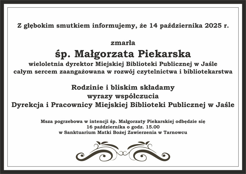 Z głębokim smutkiem informujemy, że 14 października 2025 r.
