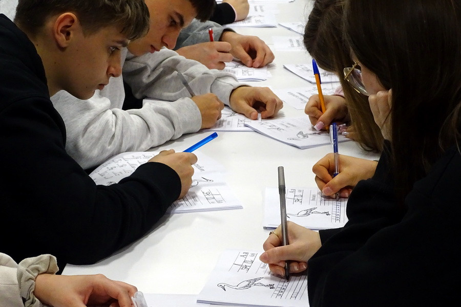 Młodzież poznała podstawy cyrylicy i świat rosyjskiego alfabetu, a każdy mógł spróbować zapisać swoje imię w nowym alfabecie. Ćwiczenie okazało się nie tylko nauką, ale też świetną zabawą. Warsztaty przebiegły w atmosferze ciekawości i otwartości na poznawanie nowych języków i kultur, a młodzi licealiści z pewnością wynieśli z nich inspirację do dalszego zgłębiania tajników nowo poznanego języka i sztuki tłumaczenia.